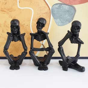 Material: resina Tamanho: consulte a imagem Peso: 300 g Design exclusivo de esqueleto: este conjunto de três estatuetas pretas de esqueleto retrata a clássica pose de “pensador”, oferecendo um toque humorístico e atencioso a qualquer ambiente ou configuração de Halloween. Material de resina de alta qualidade: feitas de resina durável, essas estatuetas são feitas para durar, com detalhes intrincados e um elegante acabamento preto que adiciona um toque moderno ao conceito tradicional de “pensador”. Perfeitas para decoração de Halloween: essas estatuetas de esqueleto são uma adição peculiar à sua exibição de Halloween, trazendo um toque de humor negro à sua casa, festa ou mesa de escritório. Decoração versátil para casa ou escritório: ideais para adicionar personalidade à sua sala de estar, escritório ou espaço de trabalho, essas esculturas exclusivas certamente iniciarão uma conversa onde quer que estejam. Compacto e leve: com um peso de 300 g, este conjunto é fácil de exibir em sua mesa, estante ou lareira, proporcionando um toque divertido e elegante à sua decoração.