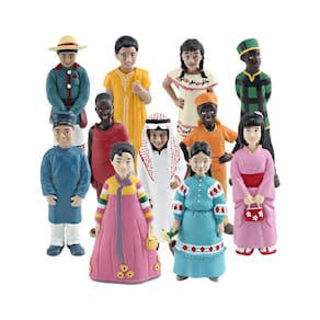 Conjunto de 11 peças de estatuetas de diversidade cultural — figuras étnicas globais de PVC, meninos e meninas em trajes tradicionais, modelos de brinquedos educacionais para crianças, 2,1 cm a 10,8 cm Descrição: Material: PVC Tamanho: 2,1-10,8 cm Peso: 500 g Características: figuras culturais diversas: este conjunto de 10 peças apresenta crianças de diferentes origens étnicas, incluindo Coréia, Japão, Arábia, Índia e muito mais, cada uma vestida com trajes tradicionais. Educacional e envolvente: ideal para ensinar crianças sobre culturas e diversidade globais, ajudando-as a aprender sobre os costumes e roupas de diferentes países. Material de PVC de alta qualidade: Feitos de PVC durável e não tóxico, esses bonecos são seguros para brincar e exibir, perfeitos para salas de aula, ambientes educacionais ou coleções pessoais. Perfeitas para decorações: essas figuras multiculturais são ótimas adições a salas com temas educacionais globais, projetos escolares ou celebrações multiculturais. Ótimas para todas as idades: adequadas para crianças e colecionadores, essas estatuetas oferecem uma experiência educacional ao mesmo tempo em que promovem a inclusão e a conscientização global. O que vem na caixa: 11 x Conjunto de estatuetas de diversidade cultural