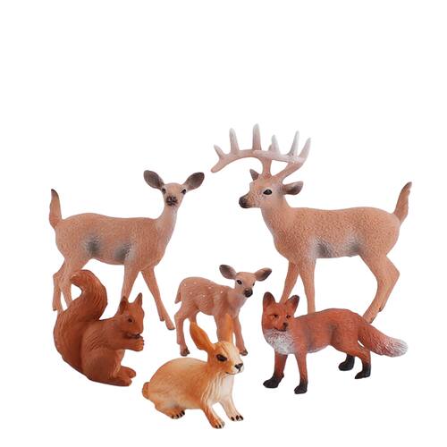 Conjunto de 6 peças de estatuetas de animais da floresta, modelos realistas de veado, esquilo, raposa e coelho em PVC — Conjunto de brinquedos educativos para crianças, bonecos de vida selvagem para brincar e decorar Descrição: Material: PVC Tamanho: 1,8-10,5 cm Peso: 128 g Características: Conjunto de estatuetas de animais da floresta: este conjunto apresenta figuras realistas de veado, esquilo, raposa e coelho, cada uma feita com atenção aos detalhes para se assemelhar animais reais da floresta. Brinquedo educativo perfeito: ideal para ensinar crianças sobre criaturas da floresta e seus habitats naturais, este conjunto de estatuetas aprimora o aprendizado por meio de brincadeiras criativas e interação prática. Construção durável em PVC: feitas de plástico de PVC não tóxico de alta qualidade, essas bonecas são seguras para crianças de 3 anos ou mais e projetadas para suportar horas de jogo sem danos. Ótimos para brincar e decorar: esses animais da floresta são perfeitos tanto para brincar quanto como peças decorativas em salas de aula, casas ou escritórios, trazendo a beleza da natureza para dentro de casa. Promove a criatividade e a imaginação: este conjunto de estatuetas inspira a criatividade das crianças, permitindo que elas criem suas próprias histórias, cenários e ambientes, aprimorando o aprendizado e a brincadeira. O que vem na caixa: 6 x Conjunto de estatuetas de animais da floresta