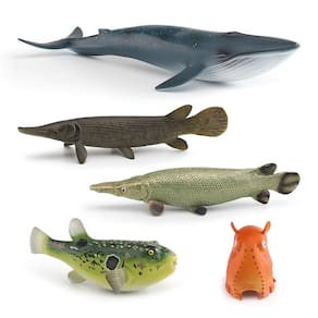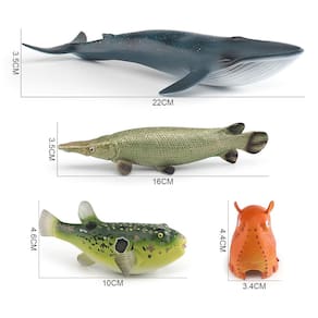 Conjunto de 5 peças de estatuetas realistas de animais marinhos — modelos de PVC, incluindo baleia azul, peixe piranha, peixe fugu, polvo e peixe-elefante — Brinquedos educativos e decorações para crianças Descrição: Material: PVC Tamanho: 3,4-22 cm, consulte a imagem para obter detalhes específicos de tamanho Peso: 400 g Características: diversas figuras de animais marinhos: este conjunto inclui 5 estatuetas detalhadas de animais oceânicos, com baleia azul, piranha, peixe fugu, Peixe-elefante e peixe-elefante, ideais para entusiastas marinhos. Material de PVC de alta qualidade: Feitos de PVC durável e não tóxico, esses modelos de animais realistas são seguros para crianças e projetados para resistir a brincadeiras e aprendizado duradouros. Conjunto de brinquedos educativos: essas figuras são perfeitas para ensinar crianças sobre a vida marinha e aquática, incentivando a criatividade, a imaginação e o desenvolvimento cognitivo por meio de brincadeiras interativas. Versátil para decoração: ideais para uso como cobertura de bolo, lembrancinhas ou decoração de quarto com tema marinho, essas figuras trazem charme oceânico a qualquer espaço. Perfeito para crianças de 3 anos ou mais: projetado para jovens exploradores, este conjunto é ótimo para crianças de 3 anos ou mais, tornando-o uma adição envolvente a qualquer coleção de brinquedos ou ambiente educacional. O que vem na caixa: 5 x Conjunto de estatuetas realistas de animais oceânicos