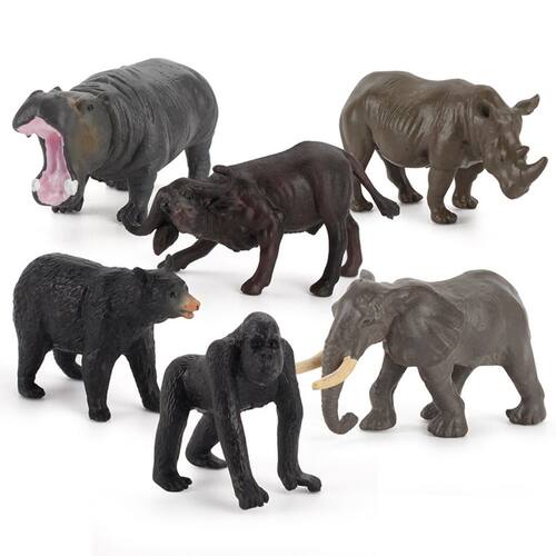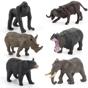 Conjunto de 6 estatuetas de animais selvagens africanos, bonecos de PVC em miniatura, incluindo hipopótamo, rinoceronte, búfalo, gorila, urso e elefante, brinquedos realistas de animais selvagens para crianças, decoração educacional para maiores de 3 anos Descrição: Material: PVC Tamanho: 3,5 a 6,5 cm, consulte a imagem para obter detalhes específicos de tamanho Peso: 73,5 g Características: figuras realistas de animais selvagens: inclui seis animais em miniatura altamente detalhados — hipopótamo, rinoceronte oceros, búfalos, ursos, gorilas e elefantes, feitos de material de PVC de alta qualidade. Perfeito para brincadeiras educativas: ideal para brincadeiras educativas e para estimular a curiosidade sobre a vida selvagem africana, ajudando as crianças a aprenderem sobre esses animais majestosos enquanto brincam. Ótimas para decorações e brinquedos: essas estatuetas em miniatura servem como decorações perfeitas para quartos infantis, dioramas ou festas temáticas na selva e também são fantásticas como brinquedos para crianças de 3 anos ou mais. Duráveis e seguras para crianças: feitas de material de PVC durável e não tóxico, essas figuras de animais são seguras para crianças e projetadas para resistir a horas de brincadeiras criativas. Compacto e colecionável: cada boneco mede entre 3,5 e 6,5 cm, o que os torna perfeitos para fácil armazenamento e exibição. Colecione todos os seis animais para um emocionante conjunto de vida selvagem. O que vem na caixa: 6 x Conjunto de estatuetas de animais africanos selvagens