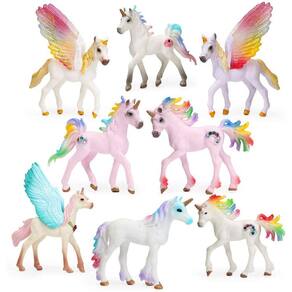 Os números do Unicorn são Certificados EN71, Certificado ASTM e Certificado HR4040, 100% seguros para crianças. Este Unicorn Cake Toppers são bem pintados e não se desintegrariam em água, resistentes por muito tempo de uso. O Unicorn Toys Set é um grande presente para inspirar as crianças seguras e criativas como um único brinquedo ou uma parte de uma coleção maior. O conjunto de estatuetas de unicórnio é lindo para brincar ou exibir, decorações de Natal, brincadeiras de carro de take-along, toppers de bolo de aniversário ou decoração de festa, e muito mais. O conjunto de estatuetas de unicórnio vem com 8 pcs Unicorn. 1 x 3,15"* 0,79"* 3,94" Unicórnio de Asas Abertas Roxas; 1 x 3,15"* 0,79"* 3,94" Unicórnio de Asas Abertas Brancas; 1x 3.54"* 0,79"* 4,72" Color Spread Wings Unicórnio; 2x 3.94"* 0,79"* 3,45" Unicórnio roxo em pé; 2x 3.94"* 0,79"* 3,45" Unicórnio branco em pé; 1x 3.45"*0.79"*2.95" Unicórnio branco em pé.