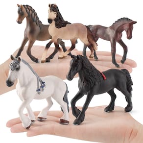 Conjunto realista de 5 estatuetas de cavalos andaluzes, modelos de animais em PVC — Coleção de cavalos performáticos espanhóis pintados à mão, brinquedos educativos para crianças, decorações de cavalos para meninos e meninas Descrição: Material: plástico/plástico Tamanho: 7,5 a 15 cm Peso: 554 g Características: pintadas à mão Detalhe: este conjunto inclui 5 estatuetas de cavalos andaluzes, cada uma pintada à mão com características realistas, mostrando a beleza e a elegância dos cavalos performáticos espanhóis. Duráveis e seguras: feitas de PVC de alta qualidade, essas figuras de cavalos não são tóxicas e seguras para crianças, garantindo durabilidade e diversão para brincadeiras educacionais. Brincadeira educativa e criativa: uma ferramenta perfeita para ensinar as crianças sobre os cavalos andaluzes e suas características, promovendo a criatividade, o reconhecimento de animais e a narrativa. Ótimos para exibir e brincar: esses cavalos podem ser utilizados para brincadeiras criativas, bem como para exibição em salas temáticas, salas de aula ou como parte de qualquer coleção de figuras de animais. Perfeitas para crianças de 3 anos ou mais: essas estatuetas são adequadas para crianças de 3 anos ou mais, aprimorando o aprendizado e a criatividade enquanto desfrutam de horas de diversão. O que vem na caixa: 5 x Conjunto realista de estatuetas de cavalos andaluzes