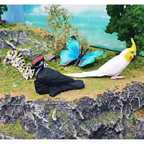Conjunto de 4 peças de estatuetas de insetos e pássaros — Modelos realistas de PVC de borboleta, cacatua, papagaio e muito mais — Brinquedos educativos de animais e decorações inspiradas na natureza para crianças Descrição: Material: PVC Tamanho: 1,3 a 9,5 cm Peso: 100 g Características: variedade de estatuetas de insetos e pássaros: este conjunto inclui 9 estatuetas altamente detalhadas, mostrando insetos como borboletas e pássaros, como cacatuas e papagaios, todas vibrantes, cores realistas. Construção durável em PVC: feitos de PVC não tóxico de alta qualidade, esses modelos de animais são resistentes, seguros para crianças e perfeitos para horas de brincadeiras educativas. Educativas e divertidas: ideais para crianças de 3 anos ou mais, essas estatuetas incentivam o aprendizado sobre o mundo natural, aprimorando a criatividade, as habilidades motoras finas e o desenvolvimento cognitivo. Perfeitos para decorações: esses modelos inspirados na natureza são lindas adições à decoração da casa, da sala de aula ou da natureza, adicionando um toque de vida selvagem a qualquer espaço. Ideal para brincar e colecionar: seja para uso educacional, brincadeira criativa ou como parte de uma coleção com temas da natureza, essas estatuetas são indispensáveis para entusiastas de animais. O que vem na caixa: 4 x Conjunto de estatuetas de insetos e pássaros