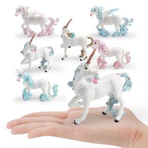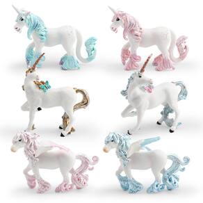 Conjunto de 6 peças de estatuetas coloridas de unicórnio — unicórnios míticos de PVC com desenhos de crina alada e arco-íris, figuras mágicas de animais para crianças, brinquedos e decorações fantásticas Descrição: Material: PVC Tamanho: 3,7-13,5 cm Peso: 550 g Características: unicórnios vibrantes e mágicos: este conjunto de 6 peças apresenta lindas estatuetas de unicórnio com crinas coloridas de arco-íris, asas e detalhes brilhantes, dando vida a criaturas mágicas. Brincadeira imaginativa: perfeitas para crianças, essas figuras de unicórnio incentivam a narrativa criativa e a criatividade, promovendo a exploração do mundo da fantasia e o reconhecimento de animais. Seguras e duráveis: feitas de PVC de alta qualidade, essas estatuetas de unicórnio não são tóxicas, duráveis e seguras para crianças, projetadas para suportar horas de brincadeira. Perfeitas para colecionadores: ideais para entusiastas de unicórnios e fantasias, essas estatuetas coloridas de unicórnio são uma adição maravilhosa a qualquer coleção de brinquedos ou decoração com tema de fantasia. Decoração versátil: essas figuras mágicas de unicórnios também podem ser usadas como peças decorativas para creches, salas de jogos ou espaços com temas de fantasia, adicionando um toque de capricho e maravilha. O que vem na caixa: 6 x Conjunto de estatuetas coloridas de unicórnio