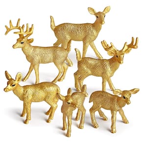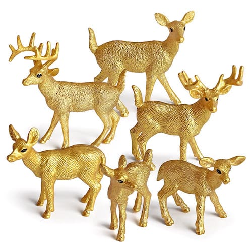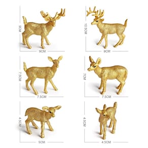 Conjunto de 6 peças de estatuetas de rena dourada, modelos realistas de veado e corça de PVC, decoração de Natal, bonecos de animais selvagens para crianças, decoração de casa, conjunto educacional de brinquedos Golden Deer Descrição: Material: PVC Tamanho: 4,5-10,5 cm, consulte a imagem para obter detalhes específicos de tamanho Peso: 136 g Características: Elegante conjunto de cervos dourados: este conjunto inclui 6 estatuetas de renas douradas lindamente feitas, com uma majestosa veado e corça graciosa, perfeitos para adicionar um toque de luxo à sua decoração. Decorações de Natal: Essas estatuetas de renas douradas são a decoração ideal para o Natal, trazendo charme festivo e elegância para sua casa, escritório ou festas temáticas de Natal. Duráveis e seguras: feitas de PVC não tóxico e de alta qualidade, essas figuras de animais são feitas para durar e são seguras para crianças de 3 anos ou mais, oferecendo oportunidades infinitas de brincar e aprender. Conjunto de brinquedos educativo: perfeito para jovens entusiastas da vida selvagem, este conjunto incentiva brincadeiras criativas e ajuda as crianças a desenvolver habilidades motoras, reconhecimento e amor pelos animais. Decoração e brinquedos versáteis: essas renas douradas têm o tamanho perfeito para exibição (4,5 a 10,5 cm), o que as torna adequadas para uso educacional, decoração de casa ou como parte de uma coleção sazonal. O que há na caixa: 6 x Conjunto de estatuetas de rena dourada
