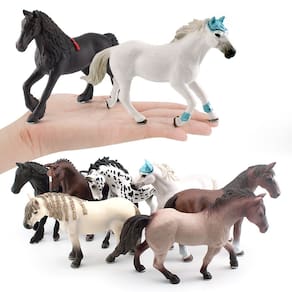 Conjunto de 8 peças de estatuetas de cavalos realistas, modelos de animais de PVC — coleção de diferentes raças de cavalos, brinquedo educativo para crianças, decoração de animais de fazenda para meninos e meninas de 3 anos ou mais Descrição: Material: PVC Tamanho: 3-16 cm, consulte a imagem para obter detalhes específicos de tamanho Peso: 1120 g Características: Variedade de raças: este conjunto inclui 9 estatuetas de cavalos realistas, cada uma representando raças diferentes, incluindo Appaloosa, Hanoverian e outras selvagens cavalos, ideais para entusiastas de cavalos. Duráveis e seguros: feitos de material de PVC não tóxico, esses cavalos são seguros para as crianças manusearem, garantindo durabilidade para brincadeiras e uso educacional de longo prazo. Valor educacional: perfeito para ensinar crianças sobre diferentes raças de cavalos e suas características únicas, estimulando a curiosidade e promovendo brincadeiras imaginativas. Ótimos para exibir e brincar: sejam como brinquedos ou peças decorativas, esses cavalos podem ser utilizados para decorações temáticas de quartos, configurações educacionais ou como parte de qualquer coleção de brinquedos. Perfeitas para crianças de 3 anos ou mais: essas estatuetas de cavalos são adequadas para crianças de 3 anos ou mais, ajudando a desenvolver habilidades de reconhecimento de animais e contar histórias por meio de brincadeiras criativas. O que vem na caixa: 8 x Conjunto de estatuetas de cavalos realistas