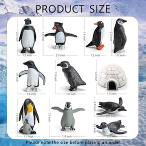 Brinquedo de estatuetas de pinguim ártico - ?Conjunto de estatuetas de pinguim?: (preste atenção ao tamanho do p2 antes de fazer o pedido) Vem com 11 peças. Pinguim Humboldt, pinguim rockhopper, pinguim gentoo, pinguim imperador, pintinho pinguim, pinguim adelie, pinguim galápagos, pinguim chinstrap, 2 pinguins nadadores e 1 iglu. As dimensões são mostradas na figura. - ?Seguro e de alta qualidade?: Estes topos de bolo de pinguim de plástico são feitos de materiais de qualidade premium altamente duráveis que são seguros para crianças e adultos. Use-os sem preocupações em cupcakes, bolos de aniversário e muito mais. Adicione um toque de charme ártico a qualquer celebração. - ?Detalhes emulacionais realistas?: Este conjunto de bonecos de pinguim foi feito à mão com aparência altamente realista detalhada, rosto fofo e olhos infantis. Suas texturas moldadas exclusivamente e detalhes ricamente pintados tornam os animais vívidos. - ?Figuras de ação de pinguim?: A decoração de bolo de pinguim prefere ser amada por adultos e crianças, estes enfeites de cupcake de bolo de pinguim serão uma ótima decoração para seus suprimentos de festa de inverno de pinguim. É ótimo como enfeite de cupcake ou lembrancinhas como presentes para prêmios de classe, festa de aniversário, Halloween, Natal, recheio de cesta de Páscoa, recheio de ovos de Páscoa, Dia dos Namorados, recheio de saco de doces e assim por diante. E é muito adorável como decoração central da sua mesa de escritório. - ?Figuras de animais polares do Ártico?: Ótimo presente para amantes de pinguins de todas as idades, perfeito para decorar um habitat animal antártico ou adicionar a um projeto temático de inverno, ideal para projetos de ciências escolares ou como lembrancinhas para uma festa de aniversário com tema animal com este conjunto de estatuetas de pinguim.