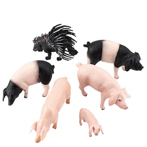 Conjunto de 6 peças de estatuetas de porco do Vietnã, modelos de porco realistas em PVC — figuras de porco masculinas e femininas, brinquedos de animais de fazenda em miniatura, perfeitos para brincadeiras infantis, decoração de fazenda e uso educacional Descrição: Material: PVC Tamanho: 1,5 a 12,8 cm Peso: 316 g Características: Conjunto completo de estatuetas de porco: este conjunto de 6 peças inclui modelos realistas de porcos do Vietnã masculinos e femininos, junto com leitões, perfeito para criar cenas detalhadas de fazendas e brinquedos com animais. Construção em PVC de alta qualidade: feitas de PVC durável e não tóxico, essas figuras de animais de fazenda são seguras para crianças de 3 anos ou mais, feitas para durar para brincadeiras e exibições de longo prazo. Brincadeira educativa: ideal para ensinar crianças sobre vida na fazenda, animais e biologia, essas estatuetas de porcos aprimoram o aprendizado por meio de brincadeiras interativas e imaginativas. Decorações versáteis: essas miniaturas são ótimas adições à decoração com temas agrícolas, dioramas ou exibições educacionais, trazendo uma atmosfera de fazenda para salas de aula, escritórios ou residências. Design realista: cada figura é pintada de forma complexa com detalhes finos, incluindo as características únicas de porcos adultos e bebês, tornando-os uma excelente escolha para colecionadores de animais. O que vem na caixa: 6 x Conjunto de estatuetas de porco do Vietnã