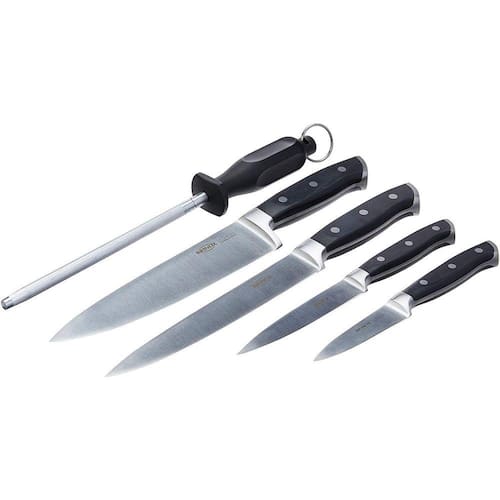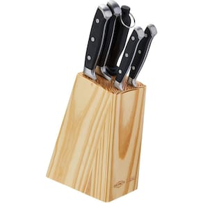 Conjunto De Facas 6 Peças Com Cepo Infinity Brinox Cor: preta Conjunto facas 6 peças com cepo infinity - brinox Facas sofisticadas, precisas e com excelente balanço. A linha infinity é para quem entende que um bom corte significa tudo na hora de preparar sua refeição. Possui lâminas em aço inoxidável temperadas, proporcionando maior durabilidade para o fio. Na espiga da lâmina em aço inoxidável maciço é injetado o abs, o que garante mais estabilidade. Possuem também, proteção para os dedos e rebites, ambos em aço inoxidável, proporcionando cortes perfeitos. Este kit é composto por faca do chef 8, faca de cozinha 5, faca para cozinha 8, faca para legumes 3 1/2, chaira 8 e cepo de madeira. Lâmina em aço inox. Cabo abs + rebites aço inox Especificações Material: aço inoxLinha: infinityComposição: 01 conjunto de facas 6 peças com cepo infinity Conteúdo 01 faca chef 8"01 faca de cozinha 8"01 faca de cozinha 5"01 faca para legumes 3 1/2"01 chaira 8" chaira01 cepo de madeira 33x21x9 cmFicha técnica- Cor: Preta