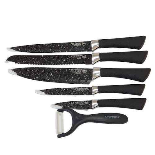 Conjunto De Facas 6 Pecas Everrich SKU: 0999 Referência: h17324 Marca: Everrich Importador: IZE Brasil Com de Importações Eireli Distribuidor: Marciana Silveira Salvador ME Produto da China Jogo de Facas Everrich 6 Peças Profissional modelo X30cr13 Facas afiadas de cozinha Everrich proporcionam rapidez e qualidade nas tarefas culinárias. Kit com 6 peças 5 facas afiadas antiaderentes e 1 descascador de batatas em cerâmica. Com selo de alta qualidade Everrich. Características e funcionalidades da faca: - O lado robusto da lâmina pode ser para quebrar pequenos ossos ou para quebrar crustáceos; - O lado mais largo da lâmina é útil para pressionar os filés para baixo e para pôr tempero na comida, por exemplo, as ervas; - A parte frontal da lâmina é utilizada para cortar pequenas hortaliças e frutas, ou alho; - A seção do meio é para cortar alimentos duros e macios. As ervas ligeiramente picadas e para picar; - A parte posterior da lâmina é Utilizado para alimentos difíceis de cortar. A transmissão de energia é ótima aqui; - Acabamento com revestimento antiaderente. Conteúdo da embalagem: 1 Faca do Chefe 8'' - 32 cm 1 Faca para Pão 8'' - 33 cm 1 Faca para desossar carne 8'' 33 cm 1 Faca para uso geral 5'' - 24 cm 1 Faca para Legumes 3,5 - 20 cm 1 Descascador de Batata - 15 cm Dimensões aproximadas da embalagem do produto: - Altura: 3 cm - Largura: 22 cm - Comprimento: 36 cm Marca: Não Informado Ean: 086201173248