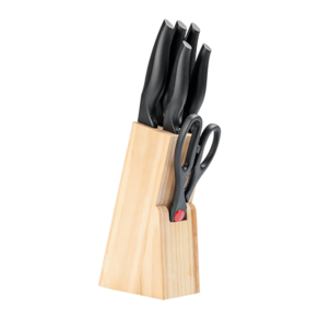 O Conjunto de facas de 7 peças com cepo da linha Cross vai deixar a sua cozinha mais completa. O conjunto de facas é ideal para o preparo de suas receitas com corte de carnes, legumes, pães e outros alimentos com facilidade e precisão. As facas são bem afiadas, produzidas em aço inox polido e com lâmina chinfrada. Com cabo em Polipropileno texturizado, o conjunto é composto por: Faca para carne 8”, Faca multiuso 4 ½”, Faca para pão 8”, Faca para legumes 3 ½”, Faca para cozinha 6”, Tesoura 21,5cm e Cepo de madeira.