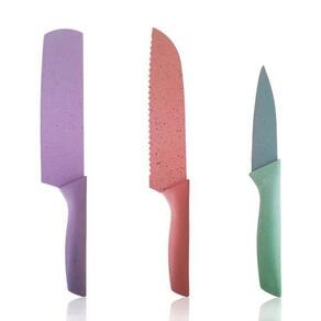 Conjunto de Facas Coloridas com 6 Peças Tesoura Ralador Conheça o Jogo de Facas 6 Peças Este conjunto prático e versátil traz facas de alta qualidade que serão suas melhores aliadas na rotina culinária, permitindo cortes precisos e confiáveis em carnes, legumes, frutas e muito mais. Com um facão pequeno ideal para cortes mais detalhados, e a faca do chef com design elegante e lâmina serrilhada, você terá precisão e eficiência ao lidar com os mais variados ingredientes. Inclui ainda uma faca menor para descascar, prática e funcional.