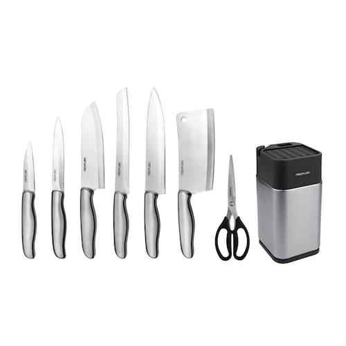 6 faca cutelo8 faca pão8 faca chefe6 faca santoku5 faca utilidade3 faca paringTesouraCepo com afiador