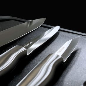 - Lâmina com acabamento de polimento acetinado que mantém um ótimo aspecto.