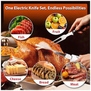 Corte de Precisão: A faca elétrica para carne torna fácil cortar presuntos, perus, assados, peixes e outros alimentos, bem como pães, legumes, frutas e muito mais. As lâminas de aço inoxidável recíprocas garantem cortes limpos e precisos, tornando a preparação das refeições mais rápida e eficiente. Escolha Profissional Afiada e Durável: Feita de lâminas de aço inoxidável de qualidade militar 420, essa faca elétrica é afiada e resistente ao desgaste, sendo uma ferramenta duradoura para cozinha e churrasco. Design Ergonômico: Leve, com cabo ergonômico antiderrapante para um agarre confortável que reduz a fadiga da mão durante o uso prolongado. Corta facilmente com operação com uma mão, sendo ideal para cozinheiros domésticos, idosos e pessoas com artrite. Conjunto Completo para Facilitar o Armazenamento: Inclui duas lâminas de aço inoxidável intercambiáveis para carnes e pães, um garfo de carne em aço inoxidável e um estojo personalizado para manter tudo organizado. Fácil de Limpar e Seguro: O garfo e as lâminas são seguros para máquina de lavar louça, com slots de lâmina embutidos e travas de segurança que mantêm as lâminas no lugar, evitando contatos acidentais e garantindo uma limpeza eficiente e segura.