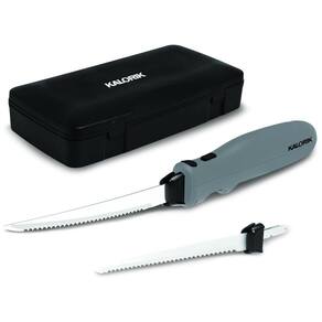 Facilite as ceias de feriado com o Conjunto de Facas Elétricas Sem Fio da Kalorik. Com ele, você pode facilmente esculpir peru, presunto, pão, queijo, frutas e legumes, ou servir um assado de feriado. Com um design ergonômico sem fio, esta faca elétrica permite que você esculpa livremente sem cabos emaranhados ou a inconveniência de estar preso a uma tomada. As lâminas ultra afiadas de aço inoxidável criam cortes limpos, uniformes e com espessura consistente. Uma lâmina dupla serrilhada de aço inoxidável é ideal para carnes e pães, enquanto uma lâmina de filetar de precisão é perfeita para peixes e itens delicados. As lâminas de liberação fácil podem ir à lava-louças e nunca precisam ser afiadas, para que você possa desfrutar de um excelente desempenho de corte vez após vez. Uma alça ergonômica proporciona maior controle durante o uso, enquanto um prático estojo de armazenamento mantém sua faca guardada com segurança até a próxima ceia. Esse conjunto esculpe com facilidade assados de feriado, peru, presunto, pão, queijo, frutas e legumes, criando cortes limpos, uniformes e com consistência de espessura, possui lâmina dupla serrilhada de aço inoxidável para carnes e pães, lâmina de filetar de precisão ideal para peixes e alimentos delicados. As lâminas de liberação fácil podem ir à lava-louças e nunca precisam ser afiadas.