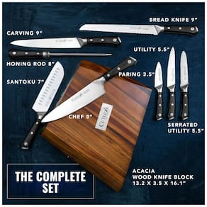 AÇO ALEMÃO PREMIUM Forjado com precisão de aço alemão de alto carbono projetado com perfeição com dureza 56 Rockwell para desempenho duradouro, resistente a ferrugem e manchas. DESIGN ERGONÔMICO FULL TANG Punho de madeira de pakka de luxo que é triplamente rebitado para uma aderência segura e estabilidade absoluta que garante conforto e manobrabilidade. Laminado e polido para uma construção sanitária, perfeito para cozinhas ocupadas. BORDA DA LÂMINA AFIADA Borda afiada à mão em 14 16 graus por lado para máxima nitidez e retenção da borda, garantindo sempre o corte preciso Marca: Não Informado