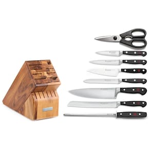 SÉRIE WSTHOF CLASSIC Conjunto de facas de 9 peças com cabos de polipropileno sintético rebitado triplo full tang que resistem ao desbotamento, descoloração, calor e impacto. A WSTHOF Classic Series tem sido nossa série mais vendida por gerações. FORJADA DE PRECISÃO As facas da série Classic da WSTHOF são forjadas a partir de um único bloco de aço inoxidável de alto carbono e temperadas a 58 graus HRC. A Tecnologia Precision Edge PEtec produz uma lâmina 20 mais afiada com o dobro da retenção da borda do que os modelos anteriores. DURÁVEL Os talheres WSTHOF são fabricados para resistir à corrosão e ao embotamento. SÉCULOS DE TRADIÇÃO Propriedade familiar há sete gerações, a WSTHOF foi fundada em Solingen, Alemanha, há mais de 200 anos Marca: Não Informado