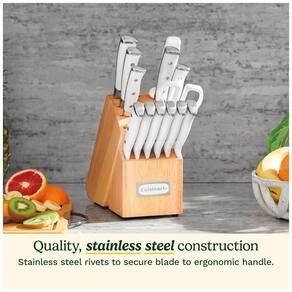 DESEMPENHO SUPERIOR Os talheres de rebite triplo forjado clássico da Cuisinart possuem lâminas de aço inoxidável de alto carbono superiores para precisão e exatidão. CONTROLE TOTAL Almofada de segurança extra larga durável para estabilidade e controle perfeitos. BEM CONSTRUÍDO Rebites de aço inoxidável para prender a lâmina full tang ao cabo ergonomicamente projetado Marca: Não Informado
