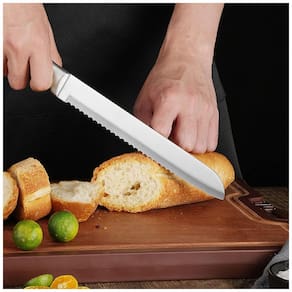 Afiada e forteEsta faca de chef profissional adota tecnologia de lâmina de precisão, o que torna a lâmina de aço inoxidável afiada o suficiente para ser facilmente usada em qualquer tipo de corte na cozinha. Materiais s e saudáveis podem entrar em contato direto com os alimentos. O suporte de acrílico é conveniente para guardar facas e é um enfeite perfeito para a cozinha
