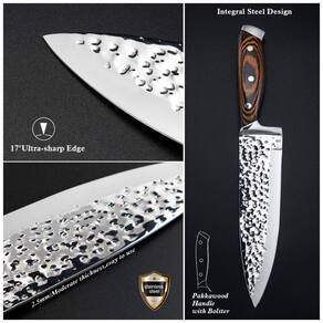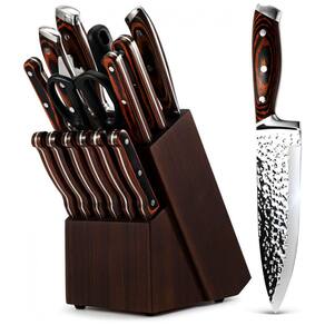 Conjunto de facas de cozinha de alta qualidade A lâmina de todas as facas é forjada em aço inoxidável de alto carbono com excelente resistência à corrosão e à oxidação. que minimiza a fadiga e maximiza a precisão de corte para as pessoas. Padrão ultraafiado e exclusivo As lâminas de nossas facas de madeira são forjadas com bordas polidas à mão e tecnologia de têmpera precisa, cada borda cônica é polida à mão a 14 16 por lado para nitidez duradoura e fácil afiação. Mantendo o equilíbrio perfeito entre a obtenção de fatias ultrafinas e a máxima resiliência que ajuda a cortar os alimentos. Fácil de cuidar e zenar todas as facas podem ser zenadas no bloco de facas Pakkawood para ajudar a manter a lâmina afiada e a mesa limpa. A máquina de lavar louça destruirá a estrutura da lâmina e causará danos. Portanto, recomendamos sempre lavar as mãos e secar imediatamente após o uso Marca: Não Informado