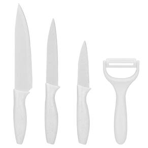 Características do produto: - Facas com lâminas de aço inox para precisão no corte. - Faca do chef 8 com medida total de 32 cm. - Faca para desossar 5 com medida total de 23,5 cm. - Faca para legumes 3,5 com medida total de 20 cm. - Descascador de legumes com lâmina de cerâmica com medida total de 15 cm.
