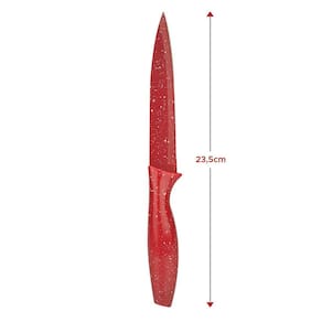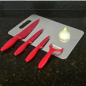 Características: - Facas com lâminas de aço inox que oferecem precisão no corte - Conjunto composto por 4 facas vibrantes e um descascador de legumes - Faca do chef de 8 polegadas 32 cm - Faca para desossar de 5 polegadas 23,5 cm - Faca para legumes de 3,5 polegadas 20 cm - Descascador de legumes com lâmina de cerâmica de 15 cm