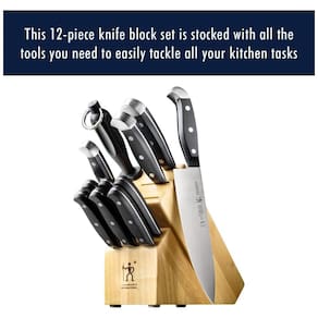 Trabalhada a partir de aço inoxidável de alto carbono para criar desempenho e valor incomparáveis conjunto de 12 peças Inclui faca de aparar de 3 polegadas, faca santoku de borda oca de 7 polegadas, faca de pão de 8 polegadas, faca de chef de 8 polegadas, seis facas de bife de 4,5 polegadas, aço de afiar de 9 polegadas e um bloco de facas de madeira dura Cabo de rebite triplo com espiga total. Para Máquina de lavar louça lavagem à mão recomendada. Tamanho 12 pc Set Cor Marrom claro. As facas de aparar JA Henckels International são perfeitamente projetadas para tarefas menores na cozinha, como descascar ou descascar legumes e frutas. O conjunto de 3 peças inclui faca de aparar de 3,5 polegadas, faca de vegetais de 3 polegadas e uma faca de descascar de 2 polegadas. Garantia vitalícia limitada do fabricante. Pode ser lavada na máquina de lavar louça Marca: Não Informado