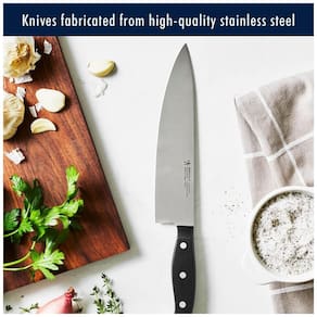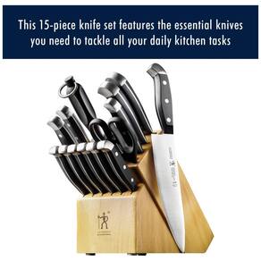 Conjunto inclui Faca de aparar, Utilitário serrilhado Faca Santoku Hollow Edge, Faca do chef, Faca de pão, Faca para bife Afiar tesouras de cozinha em aço e Bloco de madeira Fabricado em aço inoxidável de alta qualidade. peça A construção da lâmina carimbada com precisão fornece durabilidade A lâmina com acabamento acetinado profissional possui corte de precisão e é afiada para obter uma nitidez duradoura Design leve e espesso completo proporciona máxima manobrabilidade A alça tradicional de rebite triplo com tampa de aço inoxidável oferece equilíbrio Pode ser lavada na máquina de lavar louça Fabricado na China. Tamanho 15 pc Set Cor marrom claro. O conjunto de facas para facas de 15 peças da Henckels International Statement é abastecido com ferramentas para realizar facilmente as tarefas da sua cozinha. Afiadas pela nitidez duradoura, as lâminas de ponta fina possuem corte de precisão. A faca multifuncional de 8 polegadas chef é perfeita para cortar ervas e cubos de cebola e a faca de pão de 8 polegadas corta de maneira limpa o fermento em pó. Triture o alho com eficiência com o Hollku Edge Santoku de 7 polegadas, cuja lâmina possui pequenos recuos, conhecidos como grantons, que evitam que os alimentos grudem durante o corte. Fabricada em aço inoxidável durável e de alta qualidade, a construção de lâmina estampada de peça única da Statement é mais leve que forjada Além da espiga completa, isso incentiva a máxima manobrabilidade. As alças tradicionais de rebites triplos são curvadas para maior conforto e equilíbrio, enquanto a tampa de aço inoxidável acrescenta um apelo estético à exibição de seu bloco Marca: Não Informado