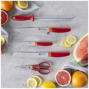 Fórmula especial ZWILLING Aço sem mancha de alto carbono A lâmina FRIODUR endurecida em gelo fica mais nítida, permanece mais nítida e tem resiliência superior O tom elegante na alça de tom faz uma declaração ousada e fresca as cores são inspiradas em ingredientes naturais a alça de polipropileno possui tratamento antiderrapante para fatiar com segurança alças ergonômicas garantem corte sem fadiga Tamanho 8 peças Cor laranja. Como especialista em cozinha moderna, a ZWILLING fabrica produtos premium que melhoram a vida de chefs profissionais e domésticos em todo o mundo. Nossa nova coleção ZWILLING NOW S apresenta uma paleta de cores elegante e tom sobre tom. Com cores fortes e frescas, as cores são inspiradas em frutas frescas Marca: Não Informado