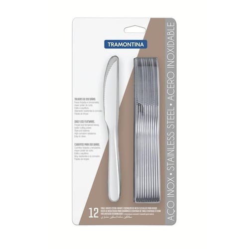 - Facas totalmente temperadas, que garante maior durabilidade no fio de corte e maior resistência à corrosão, e por sua característica de temperabilidade, não riscam as porcelanas.- Totalmente feitas de aço inox, altamente duráveis, mantêm suas características , preservando a beleza, a higiene e a durabilidade do material. - Acabamento em brilho, com detalhes no cabo. - Próprias para diário combinam com qualquer ambiente. - Podem ser lavadas diariamente na máquina de lavar louças.