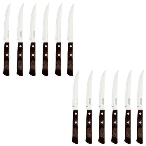 Com o Kit de Faca para Churrasco Tramontina com Lâmina em Aço Inox e Cabo em Madeira Polywood Castanho 5 polegadas 12 Peças seu churrasco no jantar ou almoço terá o charme e a qualidade que ele merece.