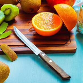 - A lâmina de aço inox tem maior durabilidade do fio devido ao tratamento térmico. - O cabo de madeira tratada Polywood é resistente à impactos e alta temperaturas garantindo maior resistência e durabilidade - Rebites de alumínio - Pode ir à máquina de lavar louças facilitando seu dia a dia.