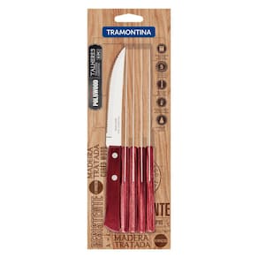 Conjunto de Facas para Churrasco Tramontina com Lâminas em Aço Inox e Cabos em Madeira Polywood Vermelho 6 Peças Tramontina