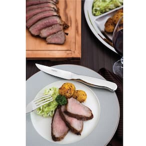 São 6 peças feitas totalmente em aço inox, com lâminas temperadas e fios serrilhados, acabamento em alto brilho e um design sofisticado que vai deixar as refeições ainda mais prazerosas e convidativas.