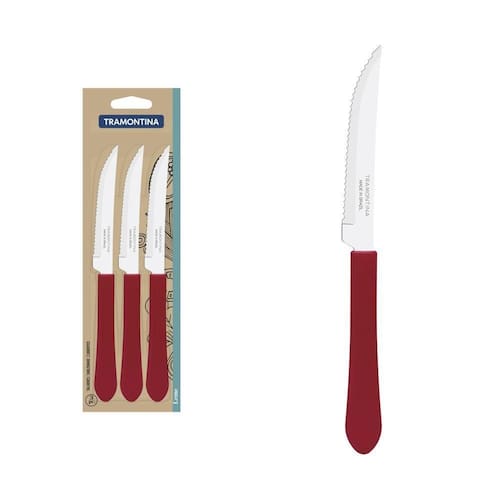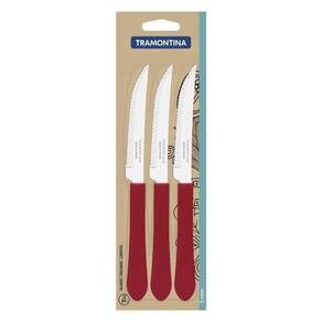 Conjunto de Facas para Churrasco Tramontina Leme com Lâminas em Aço Inox e Cabos de Polipropileno Vermelho 3 Peças