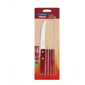 Conjunto De Facas Para Churrasco Tramontina Polywood Vermelhor 6 Peças No , o churrasco é sinônimo de tradição, comemoração e alegria. Talvez seja por isso que o churrasco brasileiro seja um dos mais respeitados do mundo. No país, essa tradição começou nos pampas da sul, mesmo lugar onde nasceu a Tramontina. E é isso que faz a gente ter tanto orgulho de ter uma linha de produtos completa com um excelente aço, madeira polywood e muita tecnologia. Tudo para você fazer bonito e fazer o seu churrasco e o mundo, nunca mais pararem de evoluir. Recomendações de Uso: Antes do uso: Antes de utilizar o , remova as eventuais etiquetas e lave-o com água e detergente.Durante o uso: Durante a lavagem use somente esponja macia, outros tipos de produtos, como palha de aço, poderão riscar ou prejudicar o brilho do aço inox. Enxágue bem a peça a fim de remover totalmente os resíduos dos produtos de limpeza, que por serem abrasivos, podem danificar o ós o uso: Após a lavagem enxugue a peça, pois as substâncias químicas contidas na água poderão causar manchas. Sempre que possível use água quente, pois renova o brilho do talher. Evite o das peças com superfícies quentes, pois podem provocar a descoloração do produto. Quando usar a máquina de lavar louça, recomendamos retirar o talher logo que tenha terminado o ciclo enxaguar, a fim de que os mesmos sejam secados manualmente.- Tenha cuidado ao Manusear produtos cortantes e perfurantes e mantenha-os fora do alcance de crianças.- Foto meramente ilustrativa. Informações Adicionais: