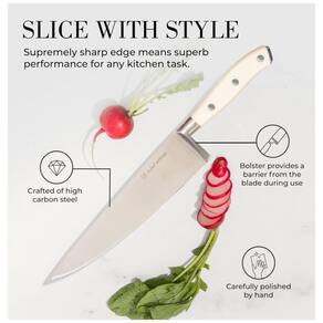 ELEVE SUA COZINHA COM ESTE LUXE BRANCO CONJUNTO DE FACAS COM AFIADOR complemente a decoração da cozinha branca com este deslumbrante conjunto de 14 peças de facas de cozinha modernas com bloco conjunto de facas de cabo branco inclui faca de cozinha grande do chef, faca de trinchar, faca de pão, faca utilitária, faca de aparar, faca santoku, 6 facas de bife branco e tesoura de cozinha resistente de aço inoxidável, tudo alojado em um bloco de facas de madeira com apontador. POSSUI AS FACAS MAIS AFIADAS DO BLOCO COM ESTE CONJUNTO DE FACAS DE AFIAÇÃO AUTOMÁTICA nossos conjuntos de facas de bloco são feitos de aço inoxidável de alta qualidade que oferece grande resistência, resistência à corrosão e retenção de borda para excelente desempenho e o bloco de facas de cozinha incluído possui um exclusivo embutido apontador que garante que seu conjunto de facas de creme permaneça afiado para sempre recomendamos lavar à mão e secar imediatamente para manter o desempenho, aparência e brilho do seu conjunto de facas branco e prata. CONJUNTO DE FACAS BRANCAS DE QUALIDADE PREMIUM PARA COZINHA FACILITA COZINHAR equipe sua casa com este conjunto de facas moderno e coeso com porta faca para balcão de cozinha cada uma de nossas facas de cozinha brancas é projetada ergonomicamente com uma alça confortável e trabalhada com uma lâmina full tang com rebites triplos para durabilidade e equilíbrio prepare carne, peixe, legumes, frutas, pão e muito mais com facilidade com uma variedade de facas autoafiáveis para qualquer finalidade em nosso conjunto de blocos de facas branco. SIMPLIFIQUE SUA COZINHA COM ESTE CONJUNTO DE BLOCOS DE FACAS BRANCOS elimine conjuntos incompatíveis ou facas soltas e sem brilho que bagunçam as gavetas e melhore sua cozinha com nosso conjunto de facas prateado e branco construído em apontador que foi projetado propositadamente para complementar a decoração e acessórios brancos da cozinha e ser exibido com orgulho em seu bancada Conjuntos de facas para cozinha com tesouras são um presente atencioso para férias, casamento, inauguração de casa ou formatura Marca: Não Informado