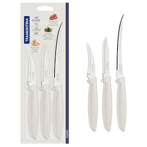 Diferentes alimentos exigem diferentes tipos de tratamento no momento do preparo de suas receitas, e por essa razão, ter em mãos utensílios específicos e de alta qualidade é o que tornará sua cozinha mais prática e eficiente. Pensando nisso, a Tramontina desenvolveu esse incrível Conjunto de Facas Plenus com 3 Peças!