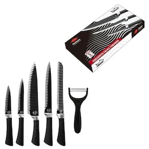 O Conjunto de Facas Tubarão 6 Peças em Aço Inox Corneta são produzidas em aço inox, oferecendo alta durabilidade e qualidade do corte, os cabos garantem a resistência à impactos e altas temperaturas. Além disso, elas trarão para a sua mesa uma união entre o rústico e o moderno. O Conjunto de Facas Tubarão 6 Peças em Aço Inox Corneta atendem a todas as necessidades de quem cozinha. Escolha a adequada para cada alimento. As lâminas de aço inox recebem tratamento térmico, que dá maior durabilidade ao fio, e proteção antimicrobiana e que inibe o crescimento de bactérias e fungos. Podem ser levadas à máquina de lavar louças.Componentes do Conjunto: Contém 6 unidades.• 1 Descascador.• 1 Faca Legumes: Lâmina 3,5” (20,5cm).• 1 Faca de Cozinha: Lâmina 5” (12,7cm).• 1 Faca de Cozinha: Lâmina 8” (20,5cm).• 1 Faca de Pão: Lâmina 8” (20,5cm).• 1 Faca de Carne: Lâmina 8” (20,5cm).Código de Barras:7896980439861 Referência:7560595 Marca:Corneta Composição/Material:Aço Inox Dimensões aproximadas do produto (cm):3x21,5x36 cm Peso aproximado do produto (kg):0.850 kg