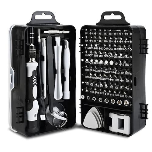 Conjunto de Ferramentas 115 Peças Manutenção Profissional Otimize seus consertos com o Kit de Ferramentas de 115 Peças, ideal para profissionais e entusiastas de bricolagem. Equipado com 100 pontas intercambiáveis, incluindo Phillips, Flat, Torx, Pentalobe, Hex e muito mais, este conjunto oferece a solução perfeita para desmontagem e manutenção de eletrônicos, como smartphones, laptops, consoles de jogos e outros dispositivos delicados.