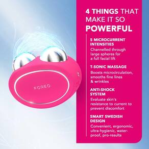 Pacote FOREO Age-Defying Bear - Dispositivo facial Bear Microcurrent + 2 x sérum condutor de 1 fl.oz. - Massageador facial antienvelhecimento - Conjunto de ferramentas de cuidado de pele para um lifting facial instantâneo - Fúcsia - Conjunto de lifting facial