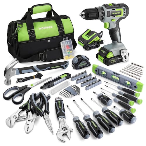 WORKPRO Kit de ferramentas domésticas com furadeira, kit de ferramentas domésticas de 157 peças com furadeira elétrica de íons de lítio sem fio de 20 V, kit de ferramentas básicas para casa com bolsa de ferramentas aberta de boca larga - Certifique-se de que a bateria tenha alguma carga, idealmente de 50 a 60 por cento, antes de guardá-la. Devido ao mecanismo de proteção de baixa tensão da bateria de lítio, para recarregar a bateria após ela descarregar completamente, você pode precisar esperar de 4 a 5 minutos até que sua carga detecte uma bateria e então ela deve começar a carregar normalmente. Se você tiver alguma dúvida, sinta-se à vontade para entrar em contato com nossa equipe - Dura por séculos, kit de perfuração doméstica de qualidade construído a partir de CRV tratado termicamente de alta resistência, resistente à corrosão e à ferrugem, acabado onde necessário para durabilidade e vida útil prolongada da ferramenta - Potente driver de perfuração, conjunto de ferramentas com broca equipada com configurações de torque de 2 velocidades e 19 dá variabilidade suficiente para aplicações amplas. Kit de perfuração ideal para manutenção doméstica e reparos de garagem - Carregamento rápido e bateria de longa duração, bateria de grande capacidade de 20 V 2,0 Ah pode ser totalmente carregada dentro de 1 hora com tempo de funcionamento sem fio extremo, equipada com proteção contra sobrecarga/sobredescarga/superaquecimento - Kit de ferramentas completo clássico com furadeira elétrica, inclui todas as ferramentas mais úteis e necessárias para reparos domésticos. Contém furadeira, brocas, martelo, chave ajustável e outras ferramentas manuais básicas - Bolsa de ferramentas tudo em um, vem com uma bolsa de ferramentas prática que permite armazenamento e adiciona flexibilidade. Embale suas ferramentas e leve-as para qualquer lugar com você quando necessário - Observação: as faíscas relativamente contidas dentro da broca são completamente normais e ocorrem quando sua furadeira está funcionando em qualquer velocidade. No entanto, se houver faíscas intermitentes e violentas ao redor do motor, cabo de alimentação ou compartimento da bateria, isso é sinal de um problema que deve ser reparado. Embora a faísca faça parte da operação normal, elas têm o potencial de inflamar detritos no ar, como serragem. É até possível acender gás, então certifique-se de que sua área de trabalho esteja bem ventilada