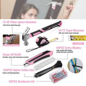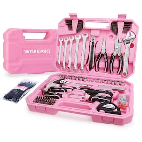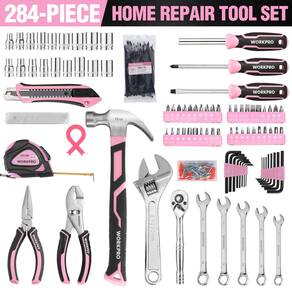 WORKPRO Caixa de ferramentas rosa, conjunto de ferramentas domésticas rosa 284 peças, kit de ferramentas rosa para casa com soquetes, alicate, alça de catraca, kit de ferramentas portátil para reparo doméstico, novo apartamento, aquecimento de casa, DIY - fita rosa - De 1º de janeiro de 2025 a 31 de dezembro de 2025, sua compra deste produto resultará em uma doação mínima de $15.000 para ser doada para Helping Women Now - Solução completa para suas necessidades diárias, nosso kit de ferramentas para casa inclui todas as ferramentas essenciais necessárias para lidar com qualquer tarefa de manutenção doméstica, montagem de móveis, pendurar fotos, reparos gerais... - Material de alta resistência, este kit de ferramentas é feito de aço CRV quando necessário, tratado anticorrosivo, garantindo durabilidade e resistência duradoura, o design bi-material oferece maior aderência confortável para uso prolongado - Funcionalidade aprimorada, como soquetes e brocas de troca rápida, chaves de fenda magnéticas fortes para melhor alinhamento, chaves angulares elevadas, fita métrica de grande largura... nosso kit de ferramentas tem o que você precisa - Armazenamento e portabilidade convenientes, ampla variedade de ferramentas são armazenadas nesta caixa de plástico durável e resistente à sujeira com compartimentos moldados que mantêm as ferramentas firmemente no lugar, com fácil acesso e proteção