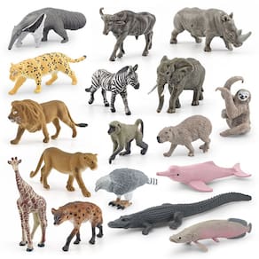 Conjunto de 17 peças de bonecos de animais selvagens, modelos realistas de animais de safári em PVC, incluindo elefante, leão, zebra, girafa e muito mais, brinquedos educativos para crianças, decorações de animais selvagens para casa Descrição: Material: PVC Tamanho: 1,8-10,5 cm Peso: 174 g Características: variedade de animais selvagens: este conjunto inclui 17 estatuetas de animais de safári altamente detalhadas, com animais como leões, elefantes, zebras, girafas e muito mais perfeito para explorar o reino animal. Material de PVC durável: Feitas de PVC de alta qualidade, essas estatuetas são resistentes e leves, o que as torna ideais para exibição e diversão, além de serem fáceis de limpar e manter. Conjunto de brinquedos educativos: uma ótima maneira de as crianças aprenderem sobre animais selvagens e seus habitats naturais. Esses números ajudam a estimular a curiosidade sobre a vida selvagem e aprimoram o jogo criativo. Decorações versáteis para animais: esses modelos realistas de animais selvagens podem ser utilizados como parte de uma decoração de quarto com tema natural, vitrines de sala de aula ou como adições divertidas a festas temáticas na selva ou safári. Perfeitas para colecionadores: com seu design realista e cores vibrantes, essas estatuetas de animais são uma adição maravilhosa a qualquer coleção de vida selvagem, adequadas para crianças e adultos que apreciam a natureza. O que vem na caixa: 17 x Conjunto de figuras de animais selvagens