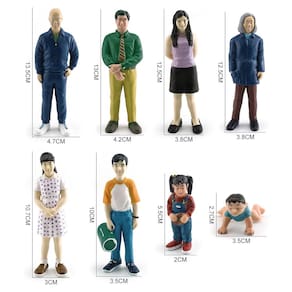 Conjunto de figuras familiares realistas de 8 peças — modelos de PVC para pais, avós, meninos, meninas e bebês, conjunto de brinquedos em miniatura para brincar, caixas de areia, decoração educacional e aprendizado criativo Descrição: Material: PVC Tamanho: 2-13,5 cm Peso: 500 g Características: Conjunto familiar completo: este conjunto de estatuetas de 8 peças inclui uma família realista com pais, avós, menino, menina e bebê, cada um modelado com detalhes intrincados para representar diferentes papéis familiares. Brincadeiras educativas e criativas: ideal para crianças, este conjunto de figuras familiares incentiva brincadeiras e histórias criativas, ajudando as crianças a entender a dinâmica e os papéis familiares e, ao mesmo tempo, aprimorando a criatividade. Decorações versáteis: essas figuras em miniatura são perfeitas para uso em caixas de areia, dioramas ou projetos educacionais, oferecendo um toque realista para decoração de sala de aula, atividades de aprendizado ou exibições domésticas. Material de PVC seguro e durável: Feitas de PVC não tóxico de alta qualidade, essas estatuetas são seguras para crianças de 3 anos ou mais, proporcionando uso durável e duradouro para fins recreativos e decorativos. Ideal para contar histórias e aprender: perfeito para promover o desenvolvimento social e emocional, esse conjunto familiar ajuda as crianças a criar suas próprias narrativas e obter uma compreensão mais profunda das relações familiares. O que vem na caixa: 8 x Conjunto de figuras familiares realistas