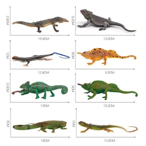 Conjunto de 8 peças de figuras de répteis realistas, modelos de camaleão e lagarto de PVC, de 1 a 18 cm, para crianças e colecionadores — Criaturas, brinquedos e decorações educacionais da floresta Descrição: Material: PVC Tamanho: Tamanho: 1-18 cm, consulte a imagem para obter detalhes específicos de tamanho Peso: 191,9 g Características: Figuras de répteis realistas: este conjunto inclui 8 estatuetas de répteis de PVC altamente detalhadas, incluindo camaleões e lagartos, cada uma com cores e características realistas. Perfeito para colecionadores e crianças. Construção durável em PVC: feitos de material de PVC de alta qualidade, esses répteis são construídos para resistir tanto ao jogo quanto à exibição, oferecendo durabilidade duradoura. Brinquedo educativo para crianças: esses répteis ajudam crianças com mais de 3 anos a aprender sobre diferentes criaturas da floresta, incentivando brincadeiras criativas e desenvolvendo habilidades cognitivas. Perfeito para exibição ou decoração: o design realista dessas figuras as torna ideais para decorar salas, prateleiras ou mesas, dando um toque natural a qualquer espaço. Ótimo para entusiastas de répteis: este conjunto é perfeito para jovens amantes de répteis, combinando diversão, educação e criatividade em um conjunto completo de brinquedos. O que vem na caixa: 8 x Conjunto de figuras de répteis realistas