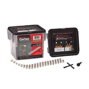 O FastenMaster Collated Cortex para decks Trex - 100 pés lineares é uma maneira rápida e fácil de ocultar fixadores e cabeças de parafusos ao instalar placas de convés Trex e agora é 50% mais rápido. Os plugues FastenMaster Cortex agora estão disponíveis em uma faixa agrupada. Isso minimiza o manuseio e economiza um tempo valioso no local de trabalho. O fixador não apenas fornece altos níveis de força de retenção, mas oculta os fixadores de todo o deck, incluindo a primeira e a última tábuas, placas de disjuntor, perímetro e escadas. Com o sistema de acionamento TORX ttap, é quase impossível removê-lo e os fixadores são facilmente removidos. O botão de estabilidade mantém o fixador em linha reta durante o processo de instalação. A ferramenta de configuração é de nível industrial e permite que você instale 350 fixadores em uma ferramenta de configuração Cortex. O Cortex é fácil de usar e inclui tudo o que é necessário, incluindo parafusos, plugues e ferramentas de configuração. A FastenMaster recomenda a instalação com uma furadeira sem fio de 18 volts. Os acionadores de impacto não são recomendados em tábuas de convés feitas de material compósito com ou sem cabeçote. Nota: A pré-perfuração não é necessária durante a maior parte do projeto. A pré-perfuração é necessária ao fixar a menos de 1/2" da extremidade de uma placa e nas juntas esquadradas. Use uma broca de 3/16" para furos piloto pré-perfurados.
