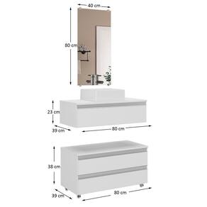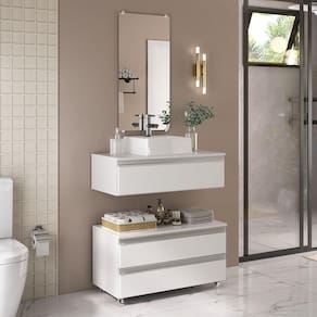KIT BANHEIRO CRETA 80CM (INCLUI: 02 Armários + Cuba Sobrepor + Espelho)